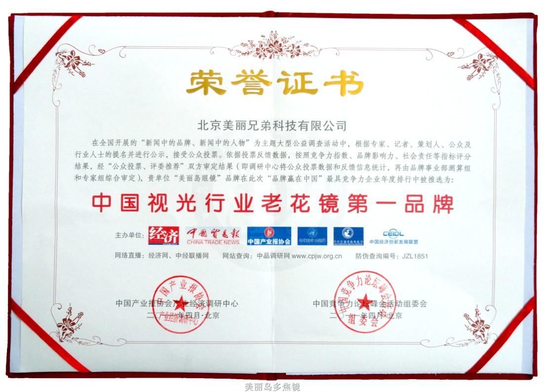 美丽岛眼镜获“中国老花镜第一品牌”殊荣