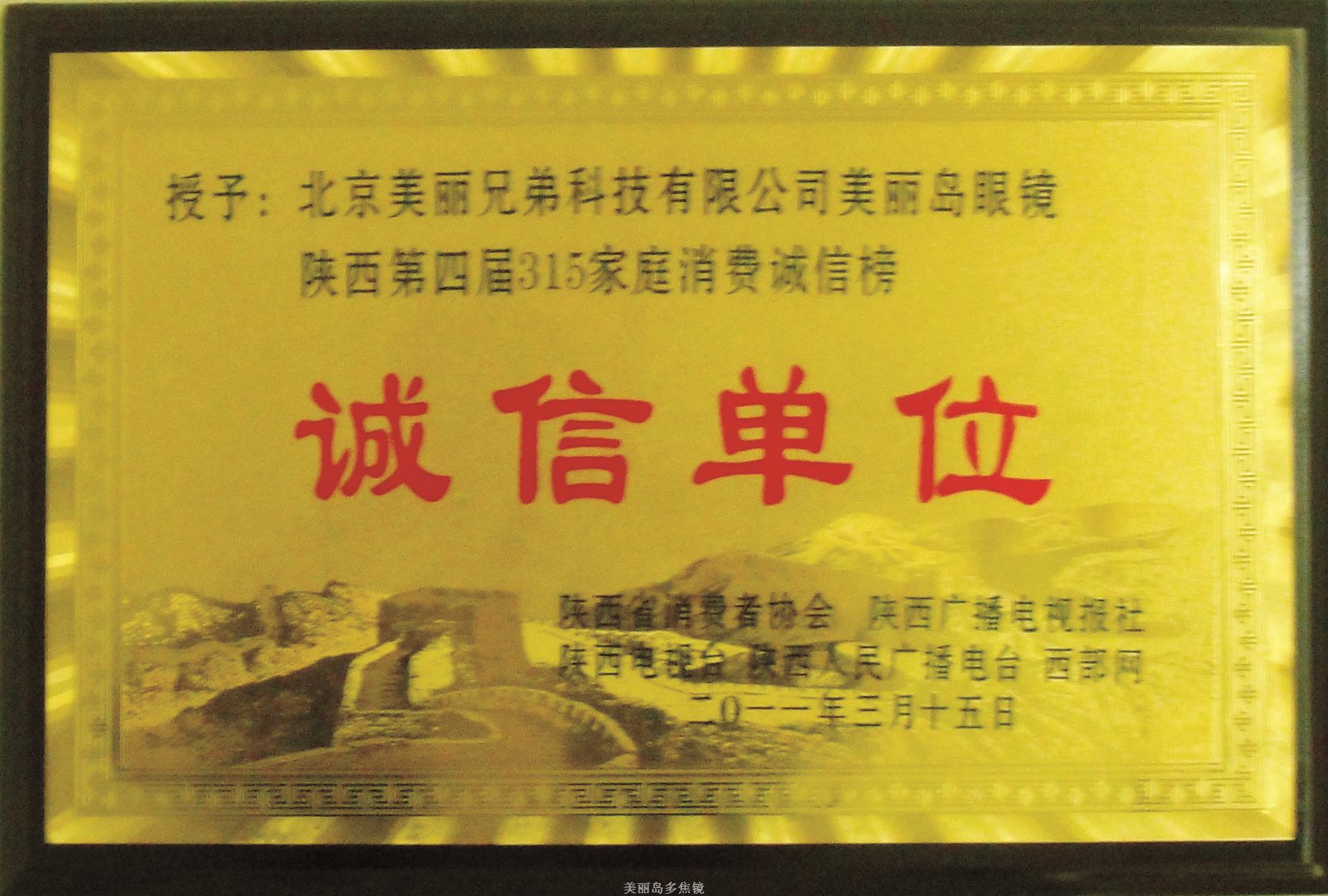 2011年3月15日,美丽岛老花镜荣获陕西省第四届3.15家庭消费诚信榜“十佳诚信品牌”。本次评选由陕西省广播电视局、陕西省消费者协会、陕西省电视...