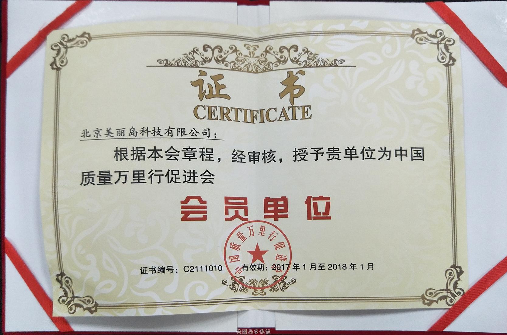 美丽岛荣获“中国质量万里行促进会会员单位”