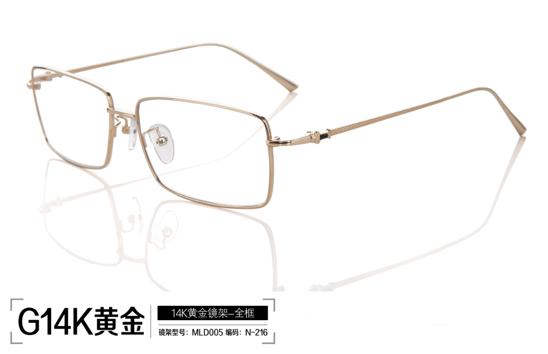 14K黄金镜架-全框 无脚套设计 富金属质感
