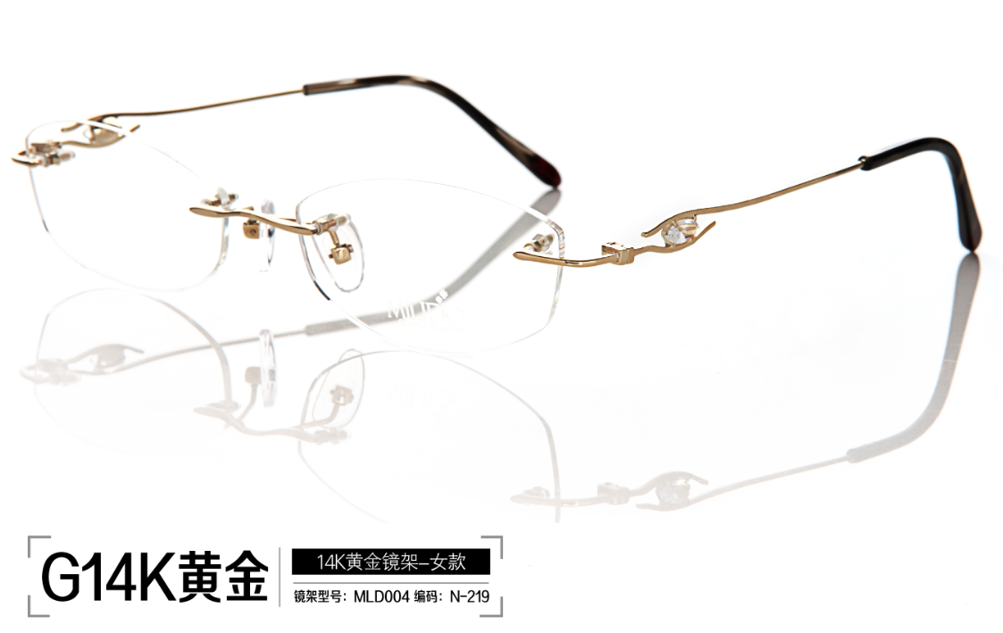 14K黄金镜架-无框 儒雅、大方 商务风格