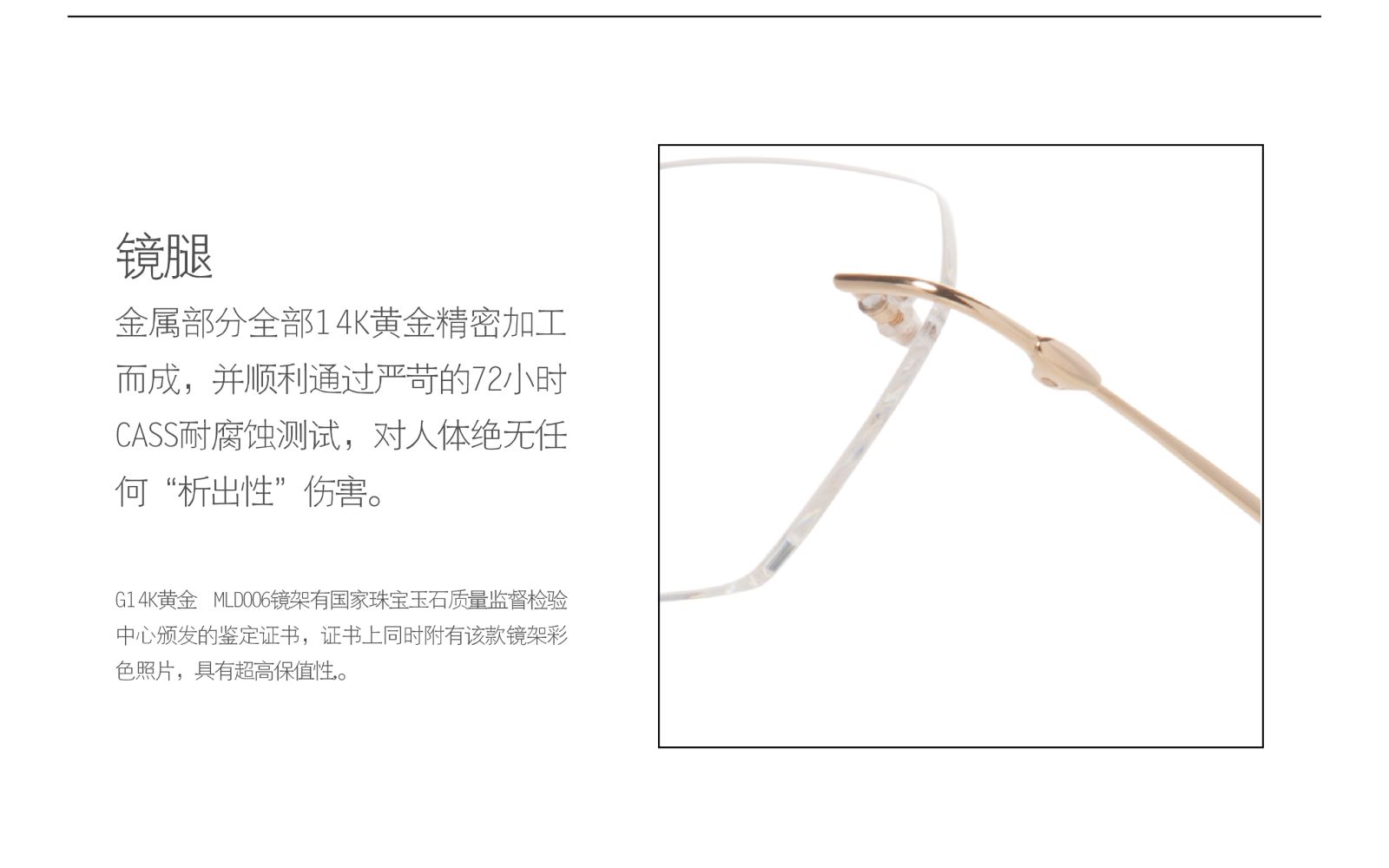 上一篇: 14K黄金镜架-全框 无脚套设计 富金属质感